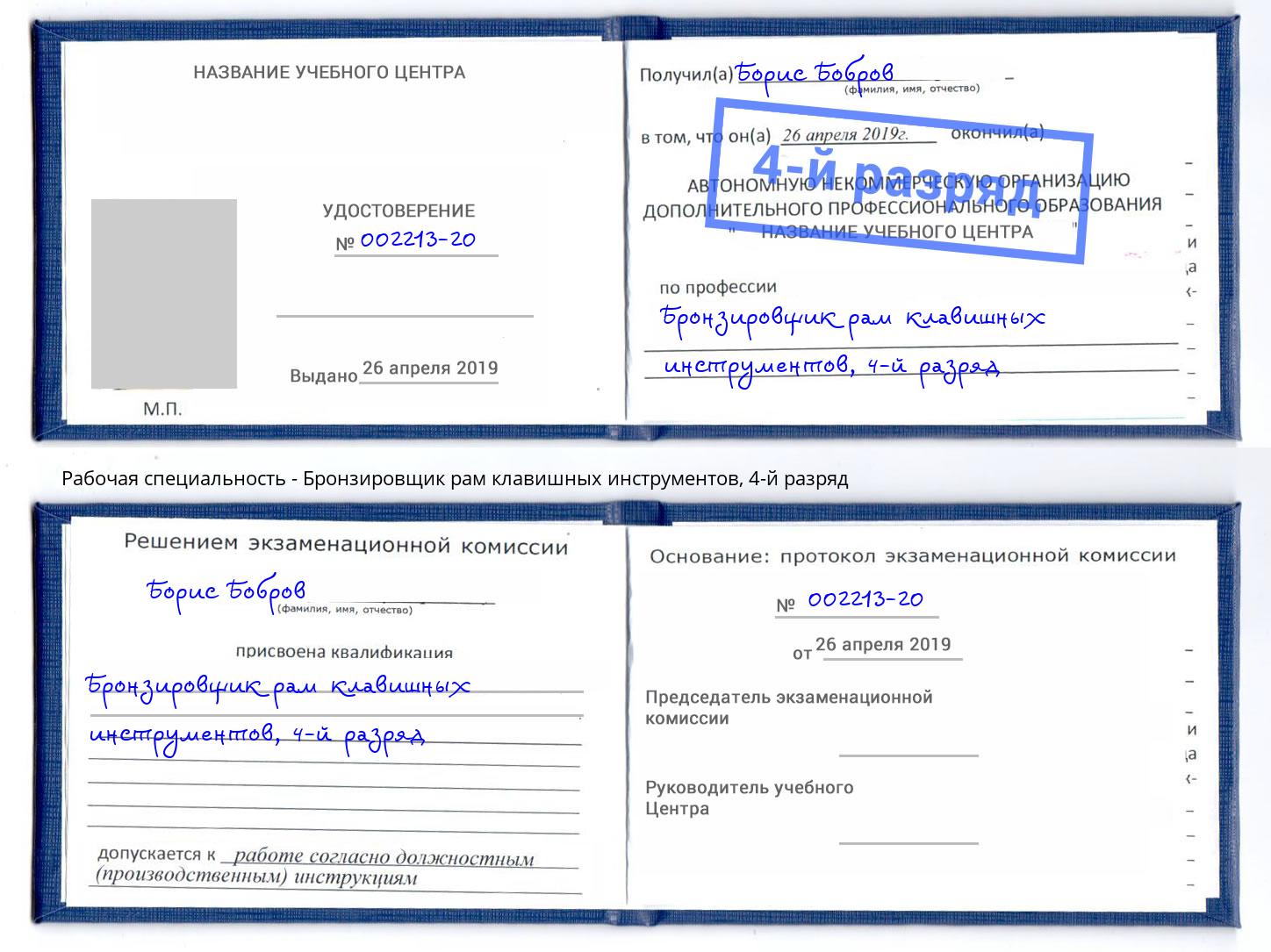 Получение удостоверения бронзировщика рам клавишных инструментов. Оригиналы договоров, чеков и актов будут доставлены по вашему адресу бесплатно.
