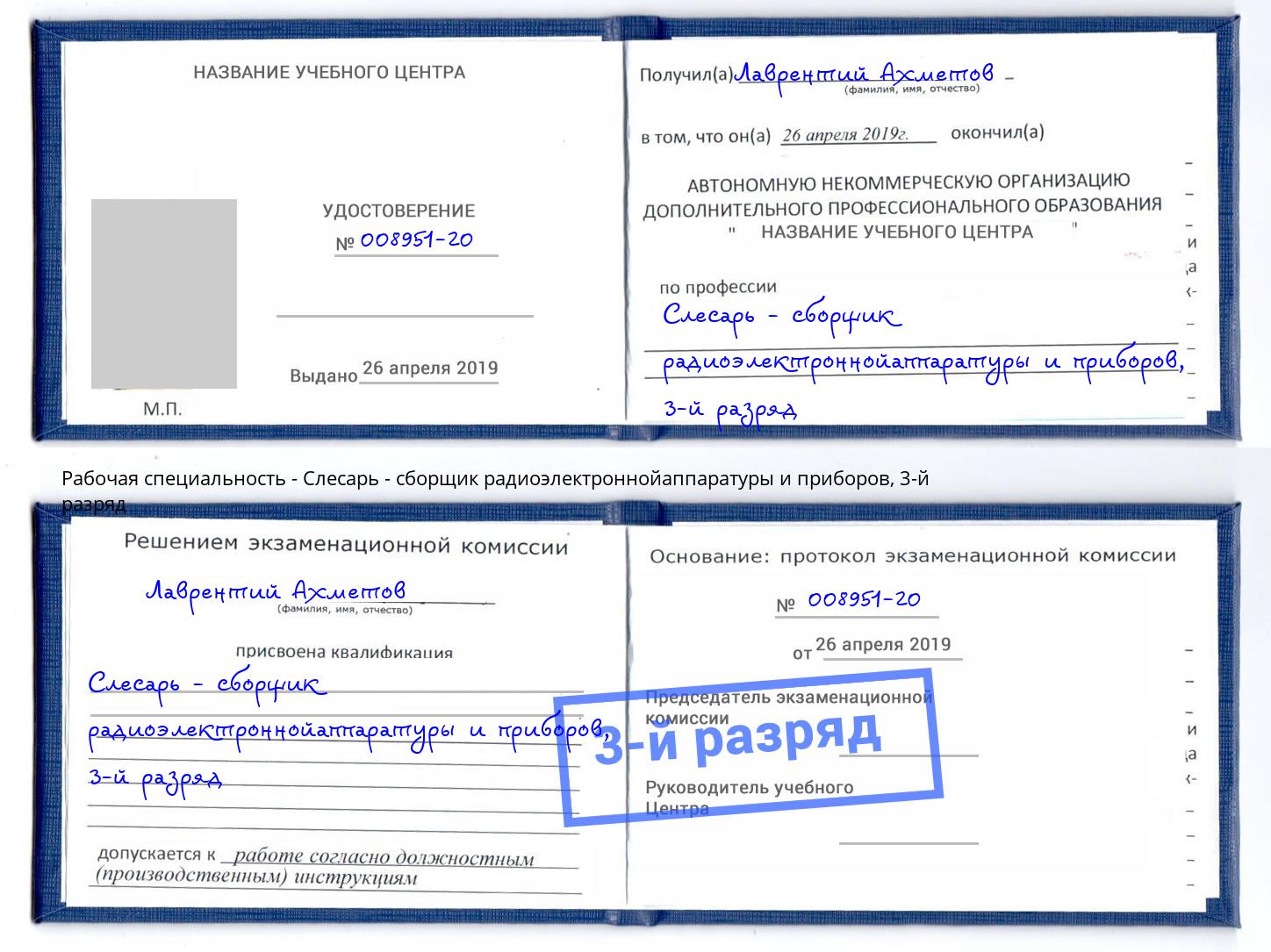 Корочка "Слесарь - сборщик радиоэлектроннойаппаратуры и приборов